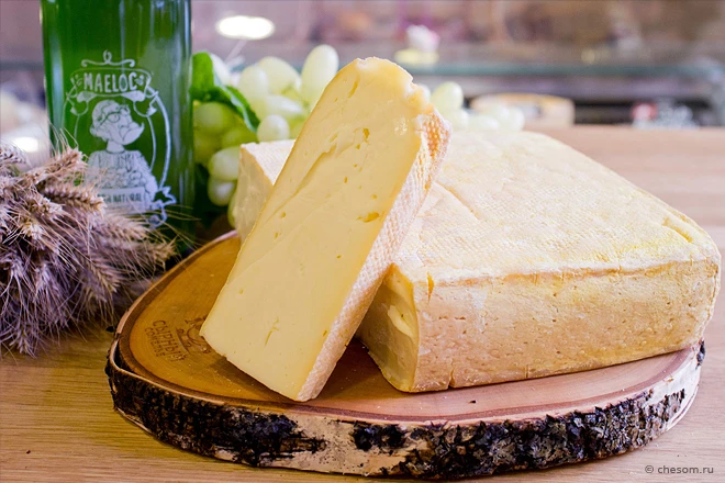 Вкус сыра нежный, сладковатый, с легкой кислинкой и фруктовым привкусом, напоминает вкус сырого теста.